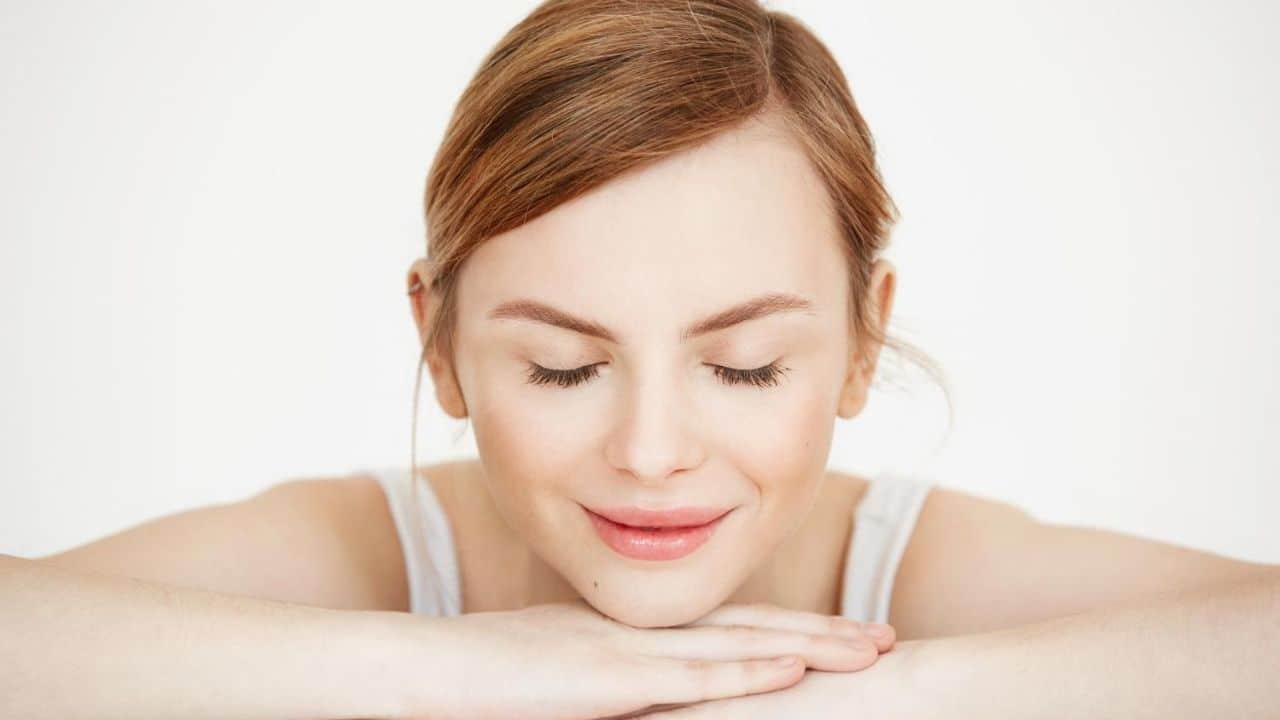 Woman with clear, glowing skin after exosomes facial treatment showing smooth texture and even tone